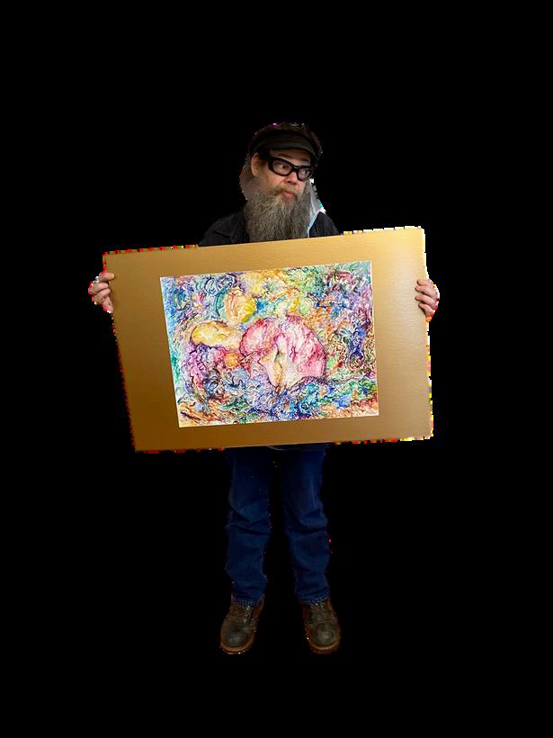 Thaddaeus Tekell joined our Artist Collective in January 2019 Thaddaeus shared that when he first came to our Studio in 2019, he had no intention of joining–he just wanted to see the art show. However, he said he got “scooped up by the people here.” He said before he knew it, during the art show, he found himself in the back of our Studio making stuff using crayons with Ellie, Beth, and Ben. He shared that the next thing he knew, our Program Coordinator was talking to him about becoming an artist in the Collective and signing contracts.