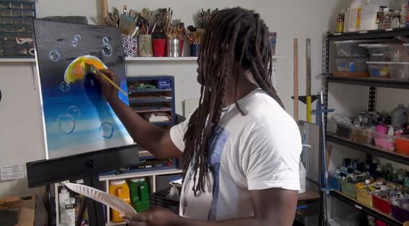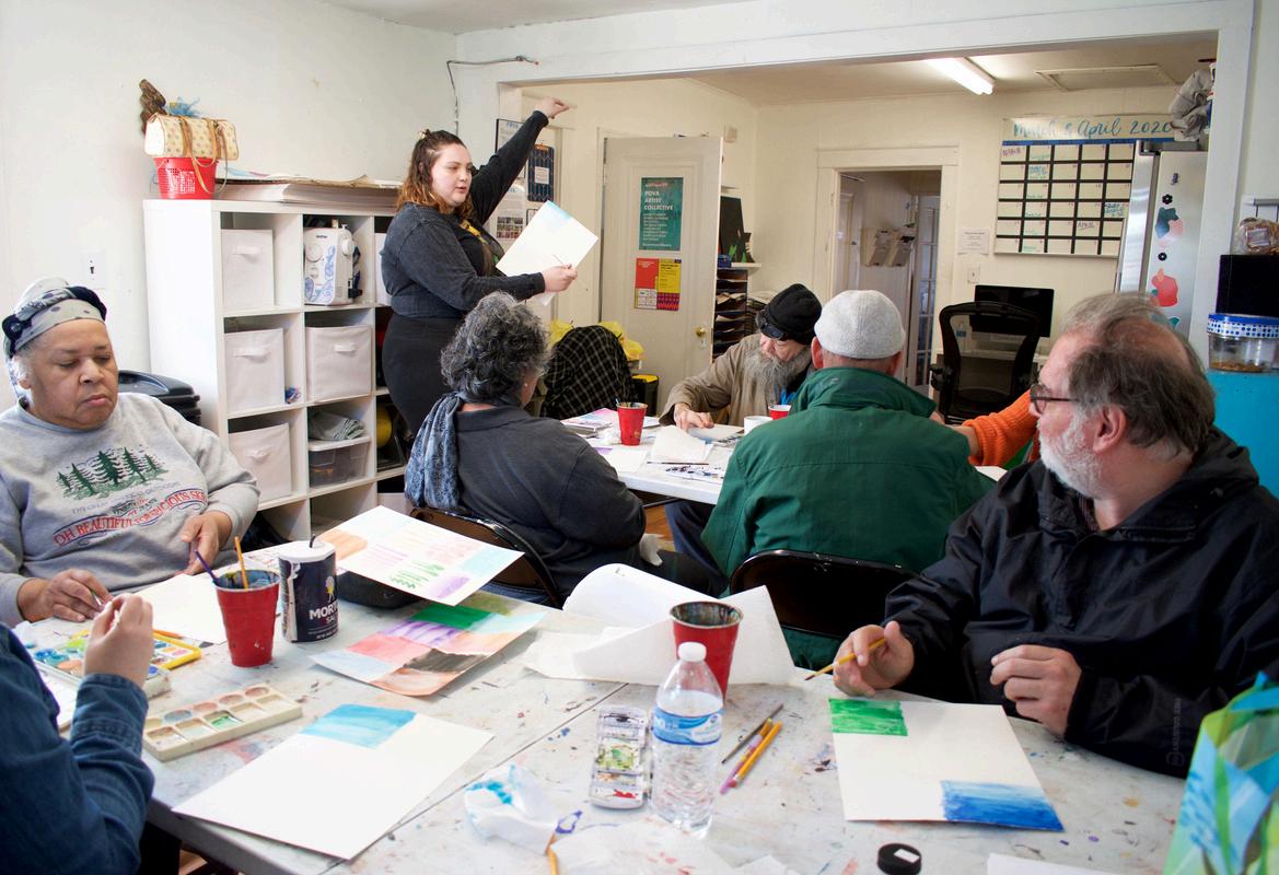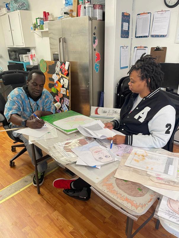 InMay2024,localartist, OmariBookerleda workshopforourartistsin partnershipwithhislatest projecttocreateaMetro Artspublicartinstallation forNashville’snew permanentsupportive housingfacility,TheStrobel Center.Omarifacilitateda discussionandart-making
