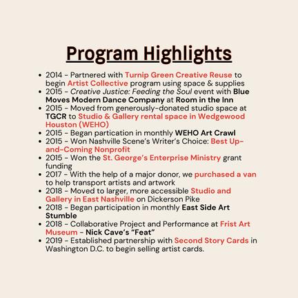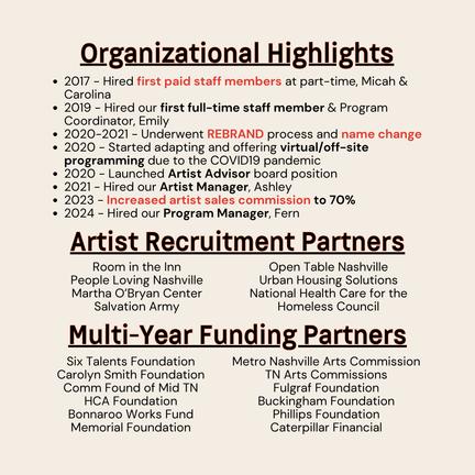 Thank you so much for journeying alongside us this past year as we built partnerships, expanded our programming, and increased the number of artists we served in our Artist Collective!