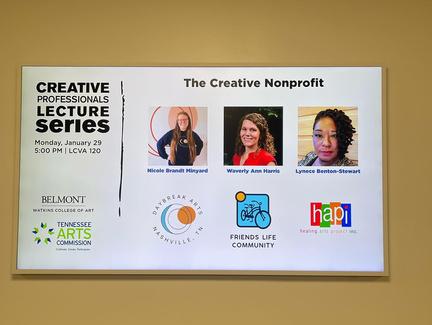 Belmont University’s LeuCenterforVisualArts and LeuFoyerGallery have been our longest exhibition partners. This past year, we exhibited January-February2024, hosted a reception and Artist Talk, as well as participated on a panel about Creative Professionals: The Creative Nonprofit with similar organizations. Check out some of our pastexhibitionsattheLeubelow!