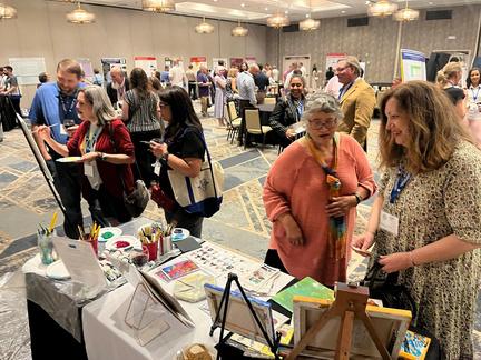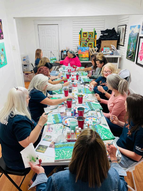 Pictured: A.M. HASSAN leading an acrylic painting workshop for HCA Healthcare employees during their Spring Community Involvement Day in April 2024.