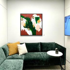 In May 2024, we installed our first exhibition at a new ongoing partner, Henricksen Design. Daybreak artists Liz, MAJ, and Kateri were selected to have their works exhibited in the showroom.