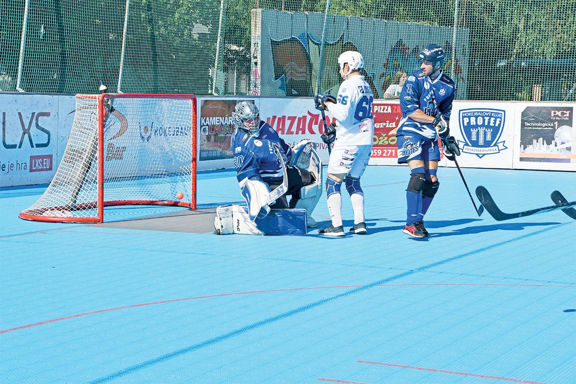 Martin Briatka (v červenom) bol opäť najlepším strelcom Pov. Bystrice aj v Topoľčanoch. Foto: Archív B. Talačová