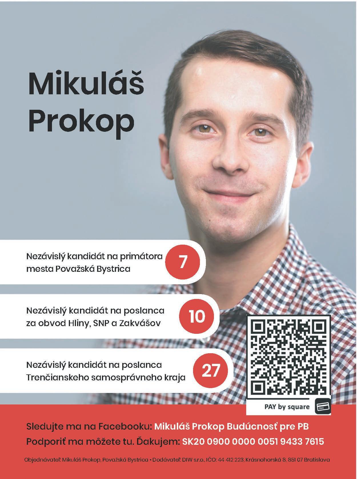 Zároveň sa uchádzam o podporu pri kandidatúre na poslanca Trenčianskeho samosprávneho kraja. Málokto si uvedomuje význam Trenčianskeho samosprávneho kraja pre naše mesto a okres. Kraj zriaďuje stredné školy, nemocnicu, knižnicu, kultúrne ustanovizne a v jeho majetku sú všetky cesty II. a III. triedy. Je preto nesmierne dôležité, kto nás na kraji zastupuje. Ak nie je poslancom primátor, riaditeľ nemocnice či starosta veľkej obce, hrozia nezvratné následky. V Handlovej takýchto zástupcov nemali a zanikla tam nemocnica aj gymnázium, v Novákoch zaniklo gymnázium, v Brezovej stredná škola, v Ilave nemocnica aj obchodná akadémia. U nás sme napriek veľkým tlakom nedovolili zlikvidovať ani jednu strednú školu, nemocnica zažíva zo strany kraja rekordné investície a krajské cesty sa opravujú v rozsahu, že nám iné okresy závidia. Bolo by hazardom ohroziť tieto výsledky.
