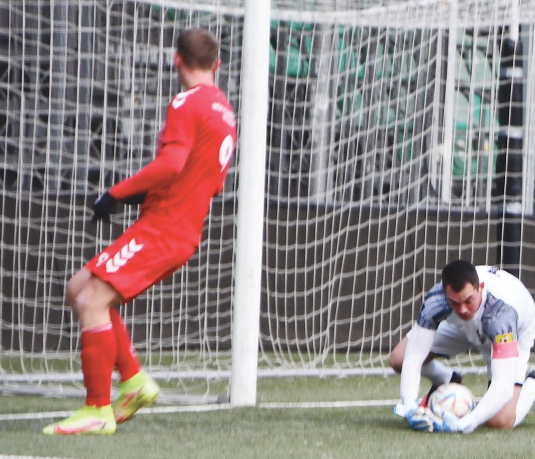 sprchy. Hneď po buly v presilovke sa Dmitrievova strela obtrela o žrď a v 54. min pri oslabení nastrelil Gergel hornú žrď. Gaťárov únik v 56. min zmaril brankár, ktorý vy chytal aj Plochotnika v 58. min. Pri hre bez brankára trafilH.Ručkay v 59. min do žŕdky a domáci rekla movali márne údajný gól. Posledné slovo mohol mať Rufati, no zblízka neskóroval. Snaha domácich pri hre 6:4 pri vylúčení Zaťka už úspeš ná nebola.