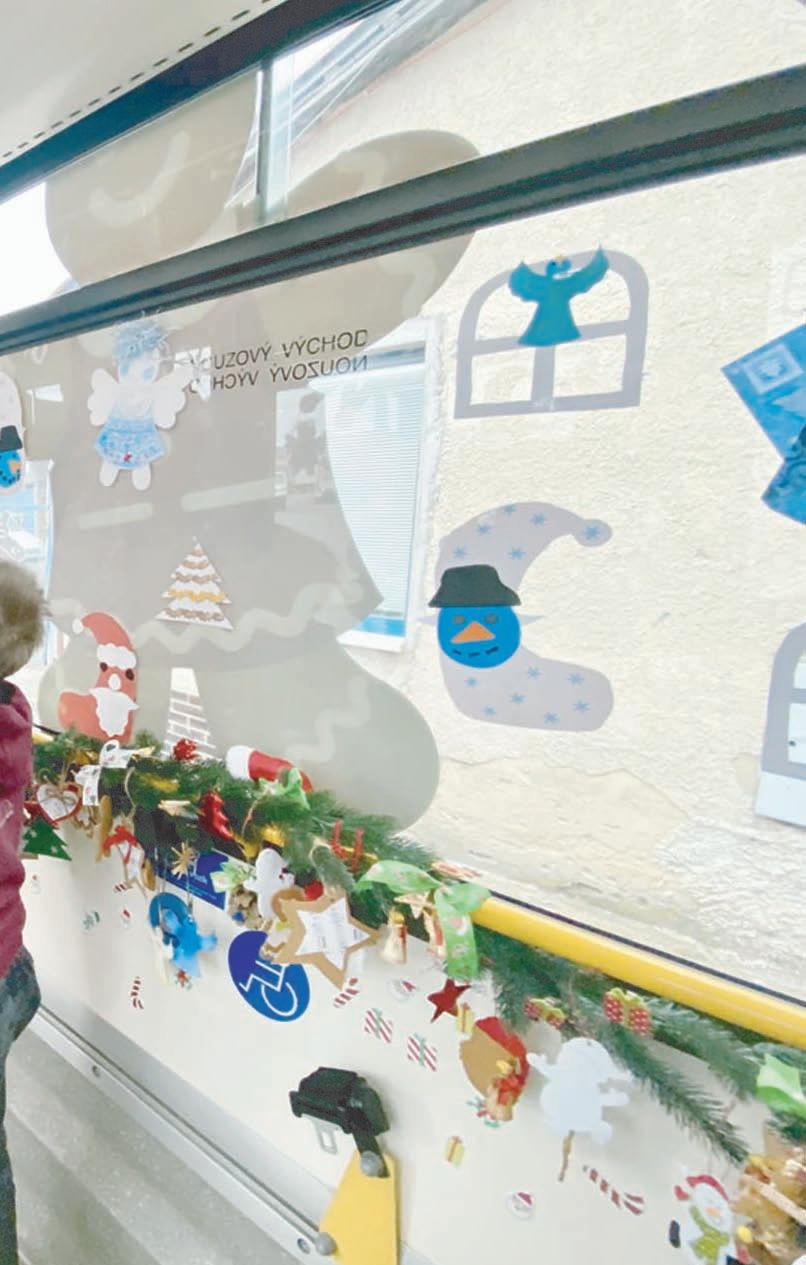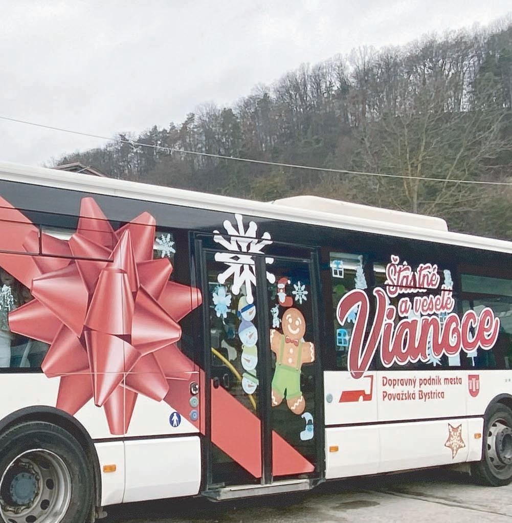 dinách výtvarnej výchovy a aj v školskom klube detí. Vyrobili veľké množstvo ozdôb, ktoré deň pred Mikulášom rozvešiavali po autobuse. Bol to pre nich výnimočný zážitok, - povedala nám riaditeľka školy Soňa Kovárová Vianočný autobus premáva po cestách Považskej Bystrice od 6. decembra. – Stretnúť ho môžete na všetkých linkách a veríme, že poteší malých aj veľkých, - uviedla Michaela Lieskovská z Dopravného podniku mesta Považská Bystrica. (mkoll)