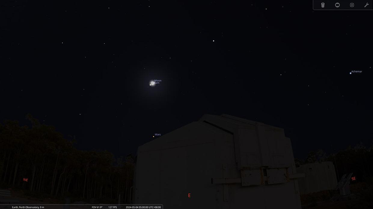 Mars, the fiery red wanderer, makes its presence known in the eastern heavens, nestled between the constellations of Pisces and Cetus during the early hours. Yet, as the month draws to a close, Mars shifts into the constellation of Pisces. Jupiter, obscured by the Sun’s brilliance, eludes the gaze of stargazers throughout May, hidden from view amidst the cosmic tapestry. Saturn rises around midnight amid the constellations of Aquarius, Pisces, and Cetus. On the 4th of May in the early morning the Moon will be super close with Saturn.