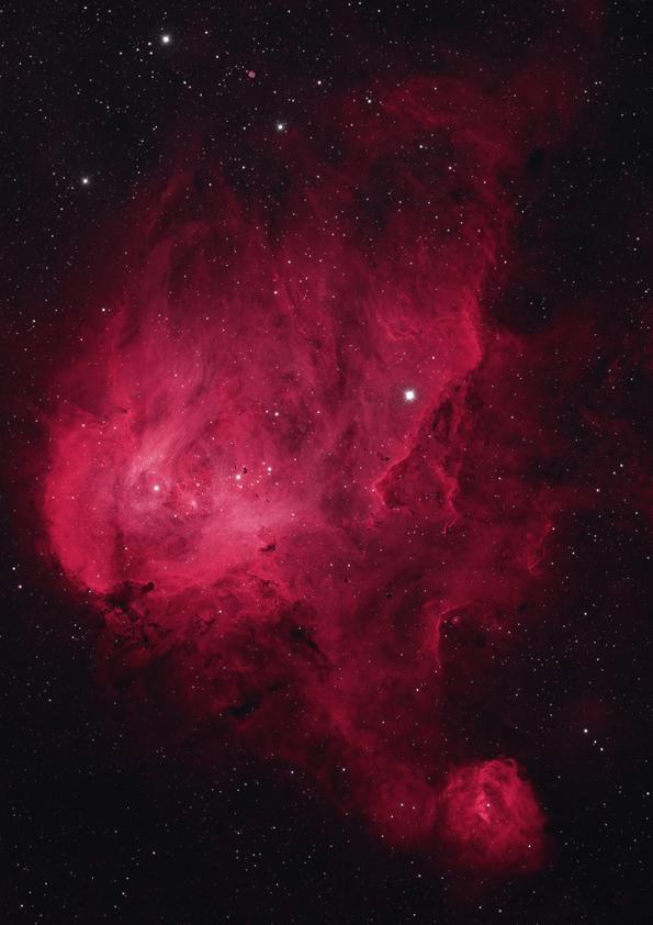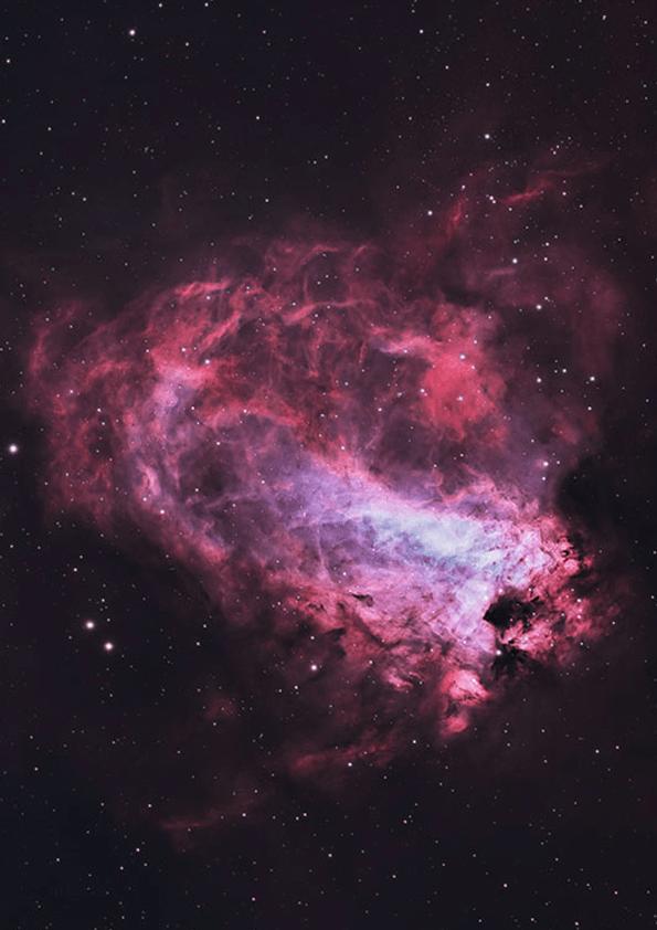 The nebula is divided into several different sections. The central region of the Omega Nebula contains a cluster of stars that are responsible for illuminating the gas and dust in the nebula. The surrounding gas and dust have been shaped by the intense radiation and stellar winds from these stars, creating a beautiful and intricate pattern of filaments and pillars. Observing the Omega Nebula requires a telescope or a pair of binoculars, as it is a relatively faint object.