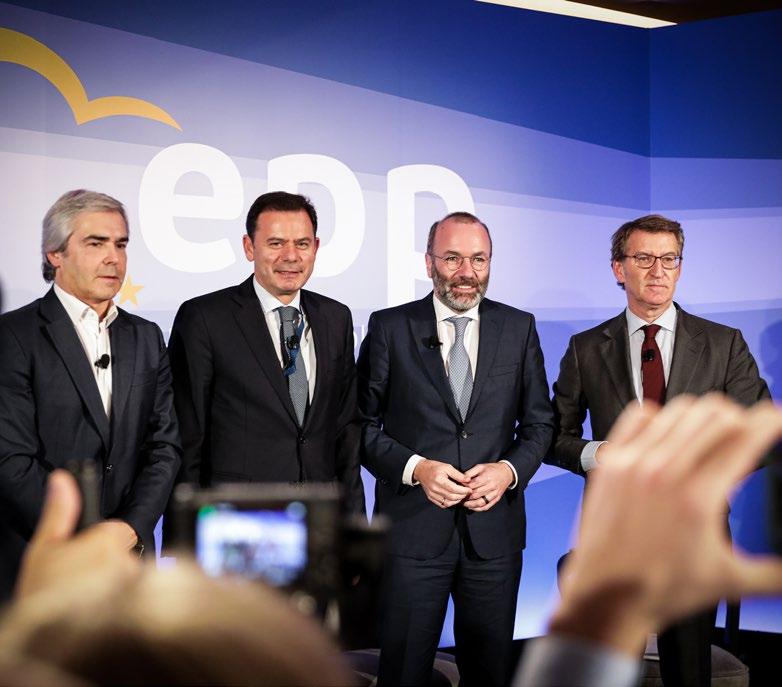 A Assembleia Política do PPE con ta com a presença do Presidente do PPE, Manfred Weber, líder do PP Espanhol, Alberto Núñez Feijóo, Primeiro-Ministro da Eslováquia, Eduard Heger, ministro do Ambien te e da Energia da Grécia, Kostas Skekas, líder parlamentar do PSD, Joaquim Miranda Sarmento, o euro deputado e tesoureiro do PPE, Pau lo Rangel, e do autarca de Lisboa, Carlos Moedas.