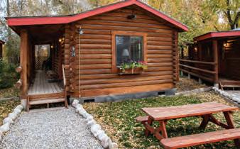 Nestled amongst mature cottonwoods, Teton Valley Cabins welcomes you for your special getaway, vacation home base, or family or group reunion. Quaint charm, rustic cabins, and affordable rates await you at Teton Valley Cabins, just one mile from Driggs, with its restaurants and shops. Enjoy our picnic and activity grounds or explore Teton Valley from here. We are centrally located, with Grand Targhee Resort just up the road and other recreational opportunities within a few minutes’ drive. Various room types are available. Our rooms are equipped with microwave, fridge, satellite TV, and WiFi. [p. 10]
