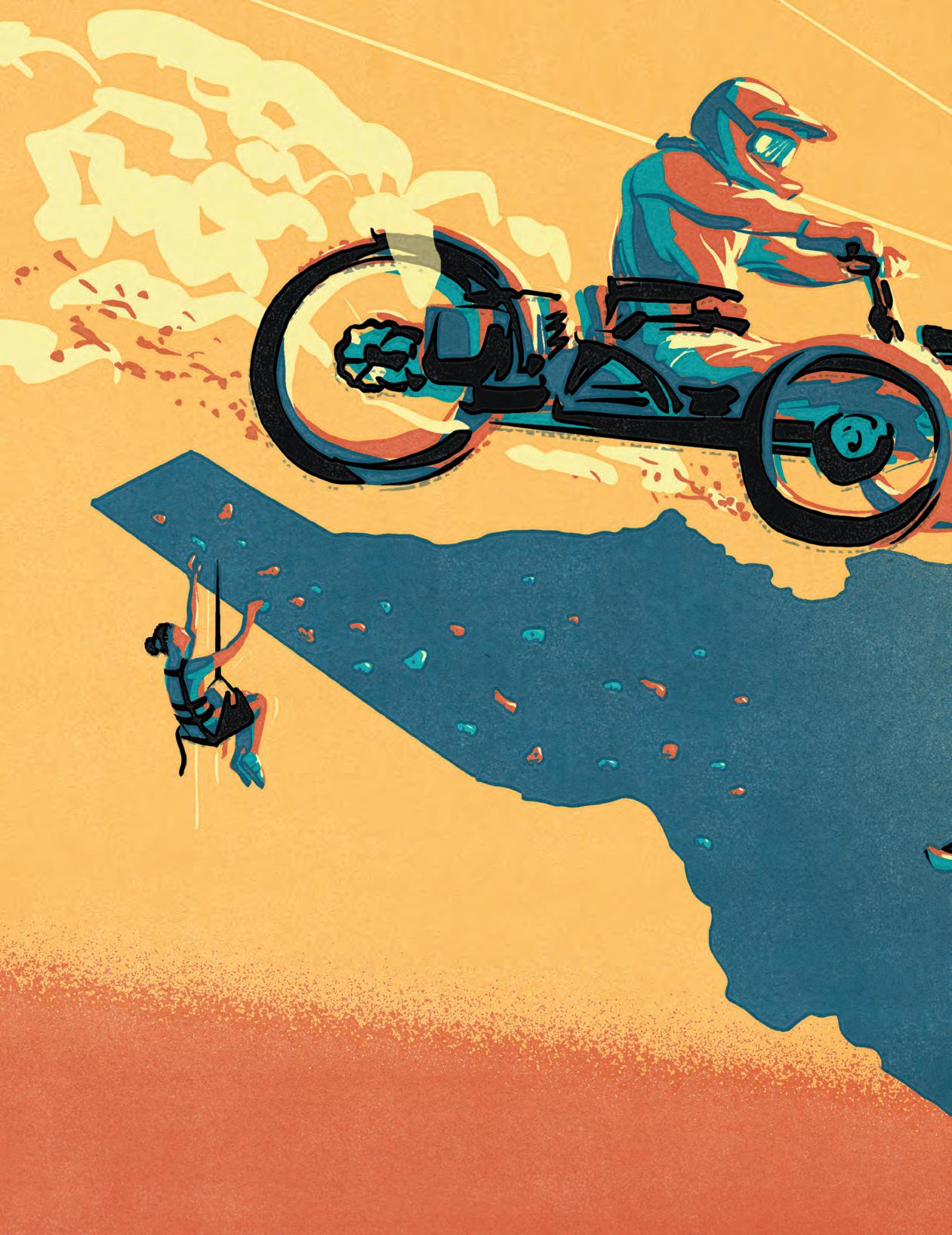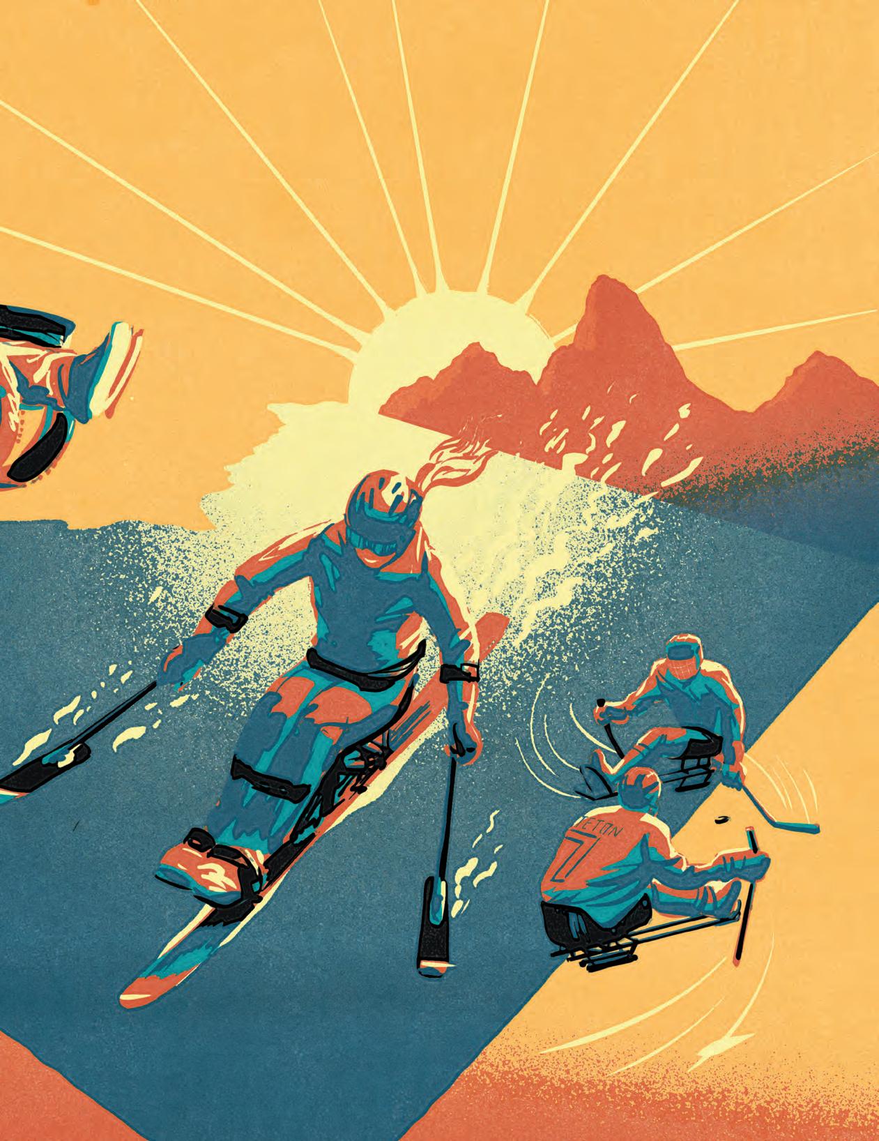 Alex Nabaum (Inclusive Outdoor Recreation, page 62) grew up in Colorado and Utah, but currently skis in Wydaho. He has worked as a treadmill tester, caricature artist, T-shirt designer, newspaper artist, and for the last 18 years as a freelance illustrator. His illustrations have appeared in the pages of the Wall Street Journal, The New York Times, National Geographic, Backcountry Magazine, and on the cover of Newsweek, Forbes, and ESPN. However, his favorite subject to illustrate is skiing at skiposters.art.