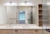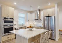 large bright windows. Kitchen has premium appliances and a sit-up island with storage. The primary bedroom has a walk-in closet and 4-piece ensuite featuring a beautiful curbless shower and heated bathroom floors.