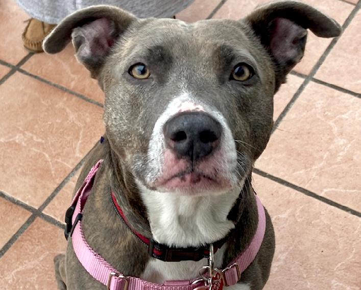 NOT SO RUFF: Above, Ellie with ElderDog Dog Care Support Coordinators Joanne Doucet and Kim Crooks and volunteers Nan Dunn, Terry Baker, and Madeline Burt. Top right, Poppy with Scott Gibson, ElderDog volunteer, and Sylvia Bergner, ElderDog client. Right, Stormy, a mixed breed, was recently adopted into a loving home. For more info, reach out to Sidney Clare, Pawd Leader, at qathetpowellriverldr@elderdog.ca