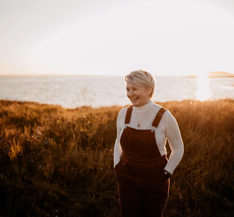 SANDRA AND ERIC OUTRAM live off-grid in a multi-generational home. Sandra is the nurturing family matriarch. Eric is supportive, and plays pickleball. Read their love story, on Page 52.