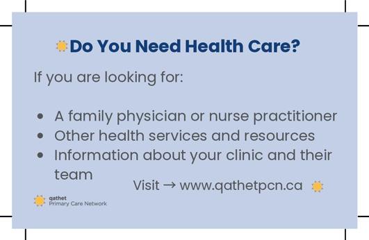 Join us on Facebook and Instagram. Visit our webpage at qathetliving.ca