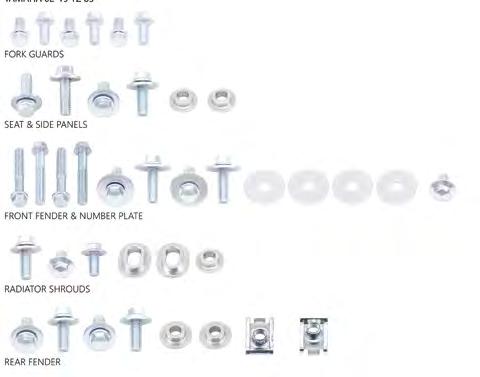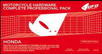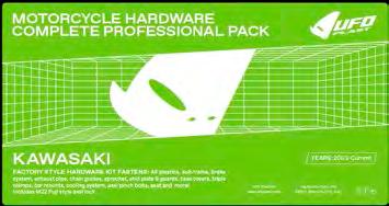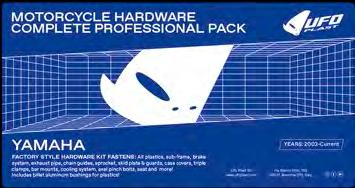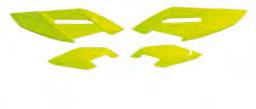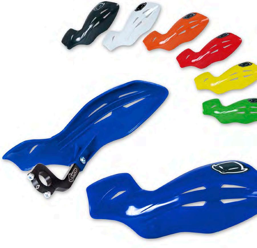 INDICE COLORI COLOUR INDEX 001 NERO / BLACK 026 VERDE KX / GREEN KX 040 BIANCO HU 20-22 / WHITE HU 20-22 041 BIANCO GG-HO-HU-SU / WHITE GG-HO-HU-SU 042 BIANCO KT 20-22 / WHITE KT 20-22 046 BIANCO YA / WHITE YA 047 BIANCO KA-KT / WHITE KA-KT 061 ROSSO UFO / UFO RED 062 ROSSO GG-HU / RED GG-HU 067 ROSSO CR 92-99 / CR RED 92-99 069 ROSSO XR / RED XR 070 ROSSO CR-CRF 00-22 / RED CR-CRF 00-22 081 BLU UFO / UFO BLUE 087 BLU HU / BLUE HU 089 BLU REFLEX / REFLEX BLUE 090 GRIGIO YZ / GREY YZ 091 BLU TM / TM BLUE 092 CELESTE / NEON LIGHT BLUE 101 GIALLO SCURO RM-RMZ / DARK YELLOW RM-RMZ 102 GIALLO CHIARO RM-RMZ 01-22 / LIGHT YELLOW RM-RMZ 01-22 103 GIALLO / YELLOW HUSQVARNA 104 GIALLO / YELLOW HUSQVARNA 19-22 121 ARANCIO CR 90 / CR ORANGE 90 126 ARANCIO KTM 97 / KTM ORANGE 97 127 ARANCIO KTM 98-22 / KTM ORANGE 98-22 181 GRIGIO / GREY 240 TRASPARENTE / CLEAR 280 OPALINO / NEUTRAL 340 ARGENTO / SILVER 341 GRIGIO KT 21-22 / GREY KT 21-22 380 GRAFFITE / GRAPHITE 420 CARBONIO / CARBON FIBER LOOK 999 OEM A VERDE / GREEN AM ACQUAMARINA / SKY BLUE AFLU VERDE FLUORO / NEON GREEN B ROSSO / RED BFLU ROSSO FLUORO / NEON RED C BLU / BLUE CL TRASPARENTE / CLEAR CLB ROSSO TRASPARENTE / CLEAR RED CLC BLU TRASPARENTE / CLEAR BLUE CLD GIALLO TRASPARENTE / CLEARYELLOW CLF ARANCIO TRASPARENTE / CLEAR ORANGE D GIALLO / YELLOW DFLU GIALLO FLUORO / NEON YELLOW D2 GIALLO CHIARO / LIGHT YELLOW E GRIGIO / GREY F ARANCIO / ORANGE FFLU ARANCIO FLUORO / NEON ORANGE K NERO / BLACK N BLU NAVY / NAVY BLUE P FUXIA / NEON PINK S ARGENTO / SILVER W BIANCO / WHITE T TURCHESE / SKY BLUE *PER LA LISTA COMPLETA DEI PEZZI OEM KIT CONSULTARE IL CATALOGO DEI RICAMBI REPLICA/ SEE REPLICA PLASTICS CATALOGUE FOR THE COMPOSITION OF OEM KITS Tutti marchi citati nel catalogo appartengono ai loro legittimi proprietari. Ufo Plast si riserva il diritto di apportare senza preavviso modifiche per migliorare la qualità e le performances dei propri prodotti. All trademarks in this catalogue belong to they legal owners. Ufo