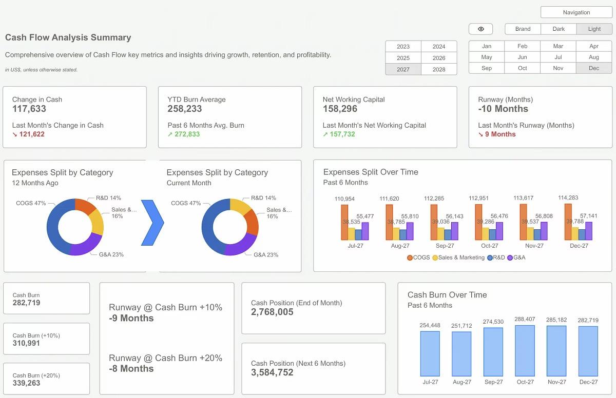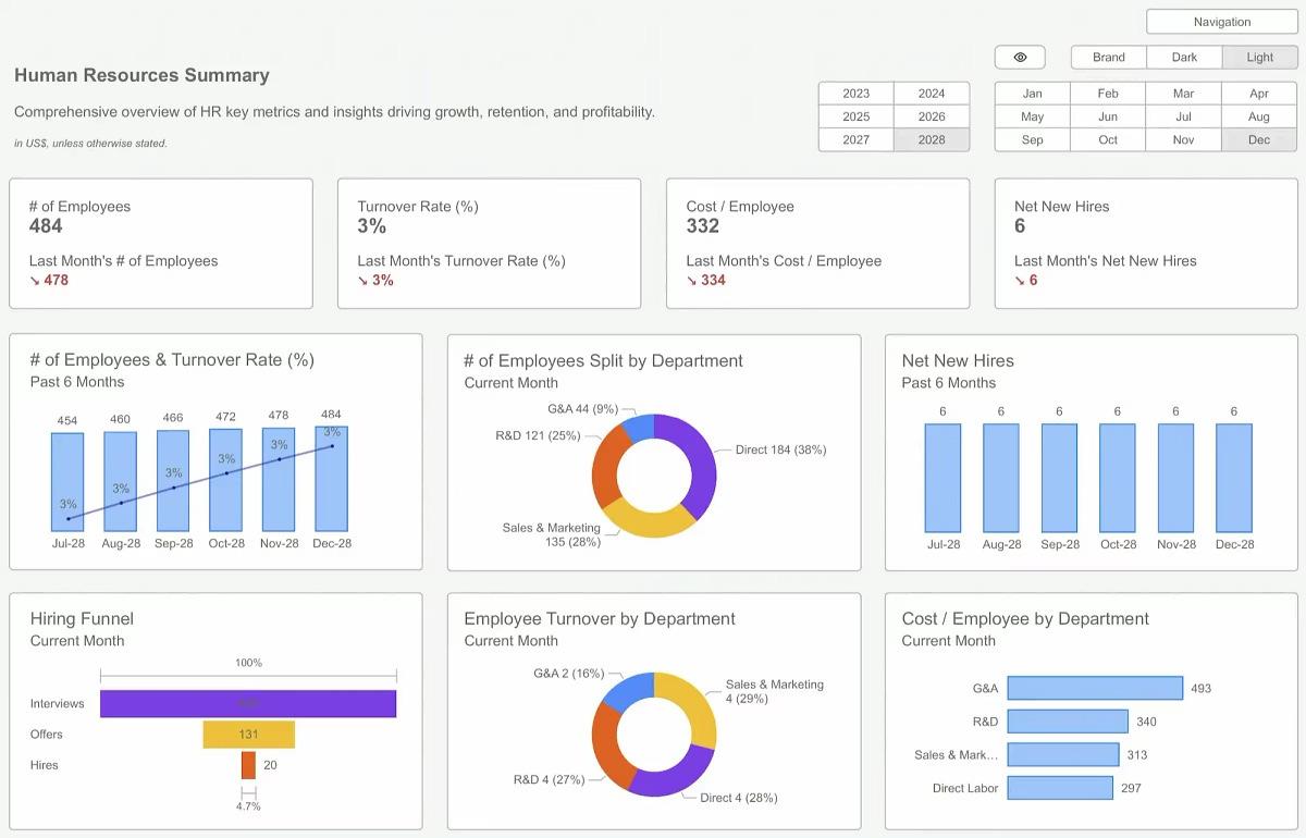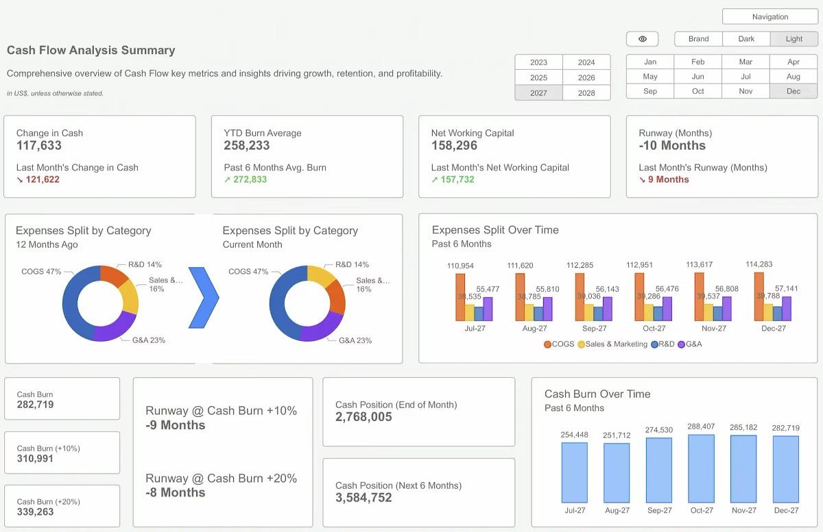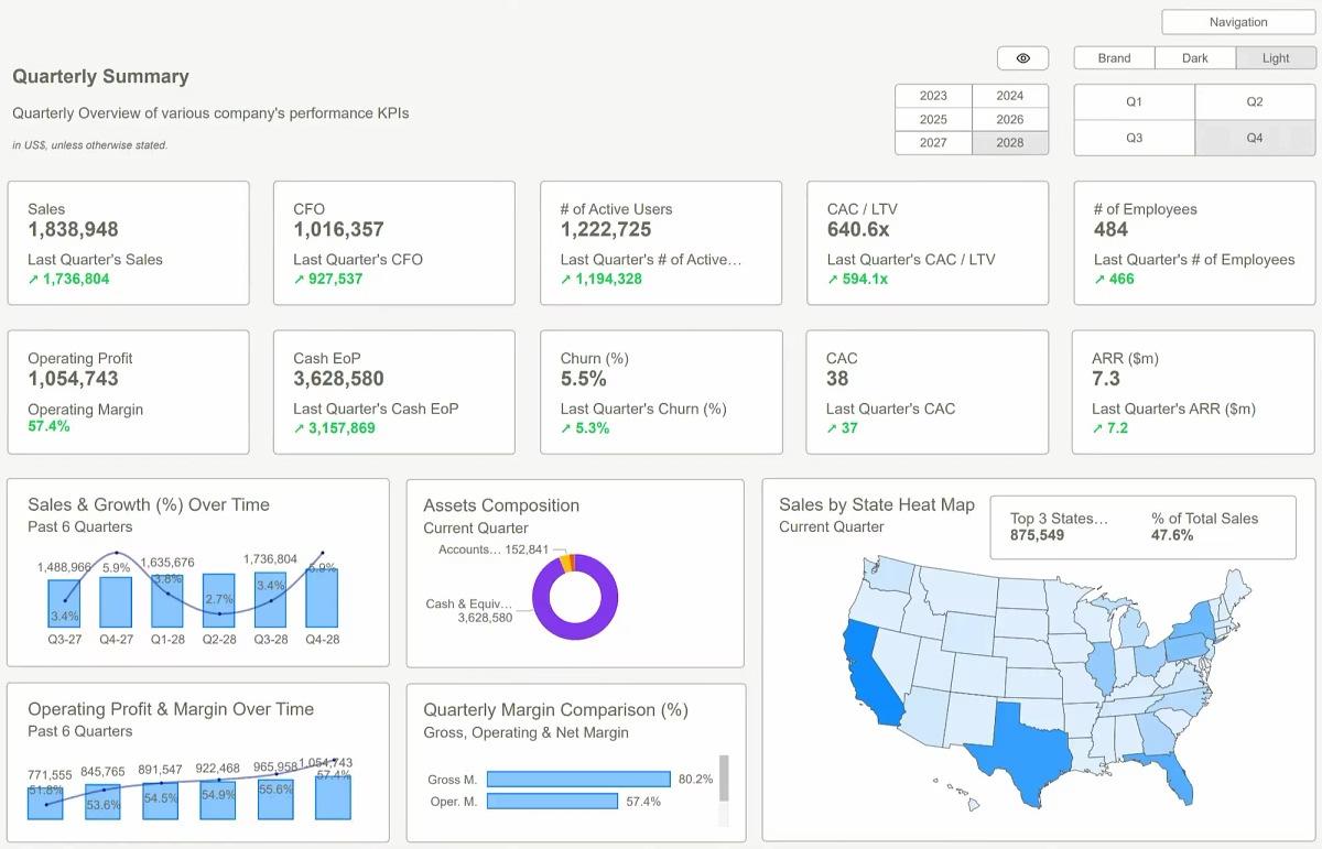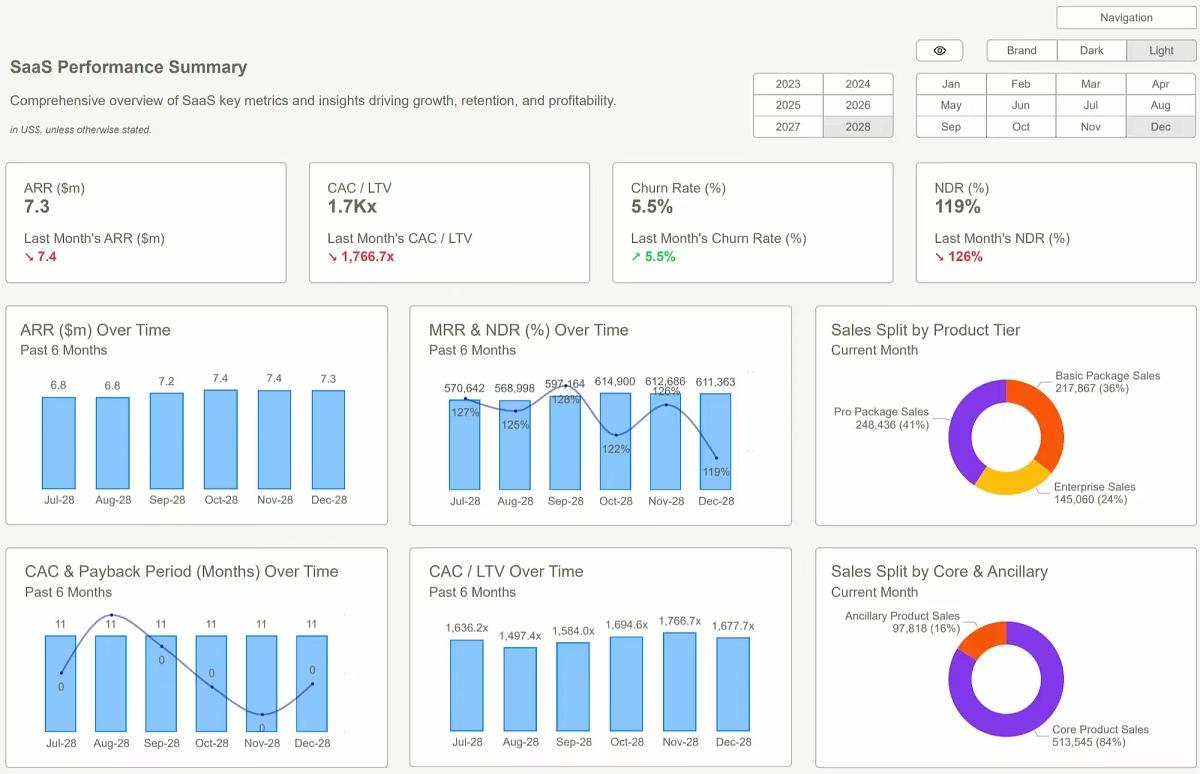 Most DIY dashboards end up confusing rather than clarifying. A professional dashboard blends: