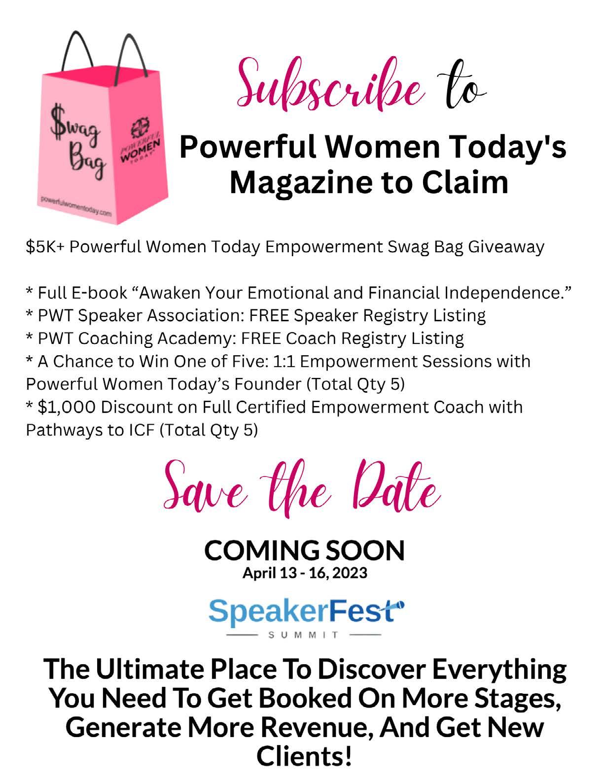 Click Here to Subscribe to Powerful Women Today Magazine and receive a swag bag valued at $1,000+ from our contributors. See full details on Page 76. Powerful Women Today Magazine 71