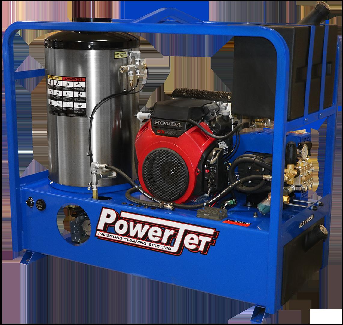 Industrial Hot Water Gas Driven Oil Fired Series is ideal for use in municipal, mining, oil field, and forestry cleaning operations. This machine can be mounted on a skid frame or mounted to a truck or trailer in combination with a water tank and a variety of hose reel and accessory options to create a totally customizable self-contained system.