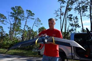 Emergency Response to Hurricane Ian • ERDC drone pilots and their equipment joined other USACE teams in deploying to Florida in response to Hurricane Ian. The teams support the installation of more than 10,000 blue roofs damaged by the strong hurricane. Operation Blue Roof is a priority mission managed by USACE for the Federal Emergency Management Agency. It provides homeowners and permanently occupied rental properties in disaster areas with fiber-reinforced sheeting to cover damaged roofs until arrangements can be made for permanent repairs. ERDC supports this USACE program by providing testing and evaluation of the drones and field data collection equipment.