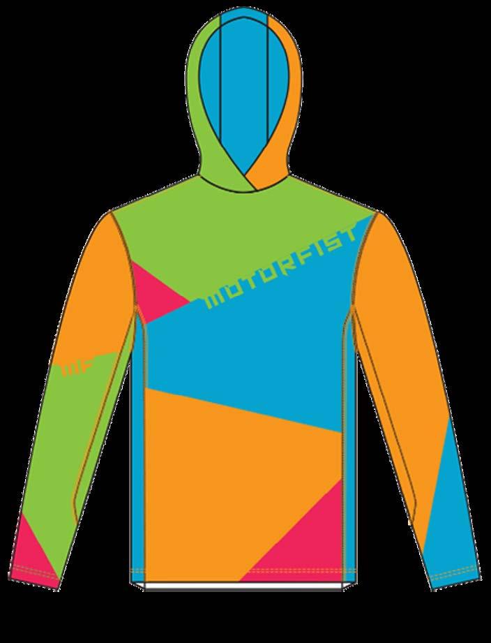 Our Galactic Hoodie is a custom built piece desgined to keep you warm and dry. Utilizing bright colors and digital chaos, make a statement anywhere!