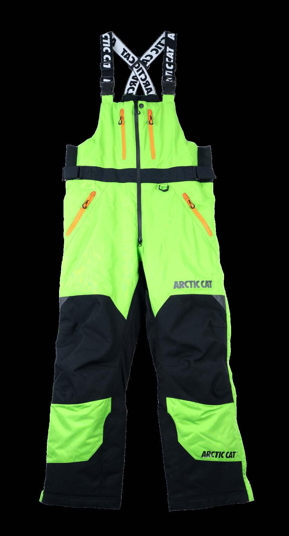 eVent Fabric Outershell, Fully taped seams, Durable adjustable suspender, Moisture wicking liner with fleece seat, 900D polyester panels for reinforcement, YKK zippers, 360-degree reflectivity, Officially licensed