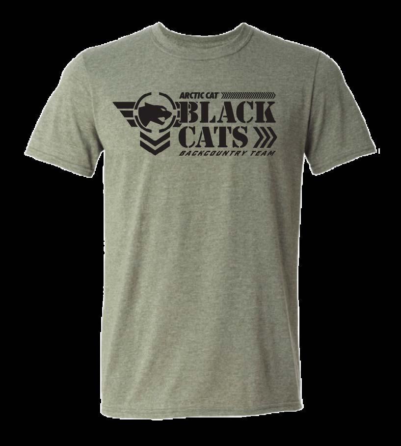 Find our Black Cats – Backcountry Team Graphic on the front of this Military Heather Green Tee for your new favorite casual piece.