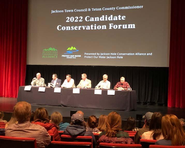 In October 2022, POWJH held the only candidate forum focused on conservation in partnership with the Jackson Hole Conservation Alliance. Candidates for Town Council and County Commission were invited to share their perspectives on how they would address the changes and challenges that face Jackson Hole residents, the water, the wildlife, and the wild places we cherish. Spanish translation was provided.