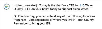 We then actively engaged to educate the community on why they should vote FOR Proposition #15: Teton County Water Quality Projects SPET.