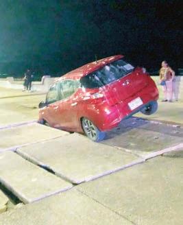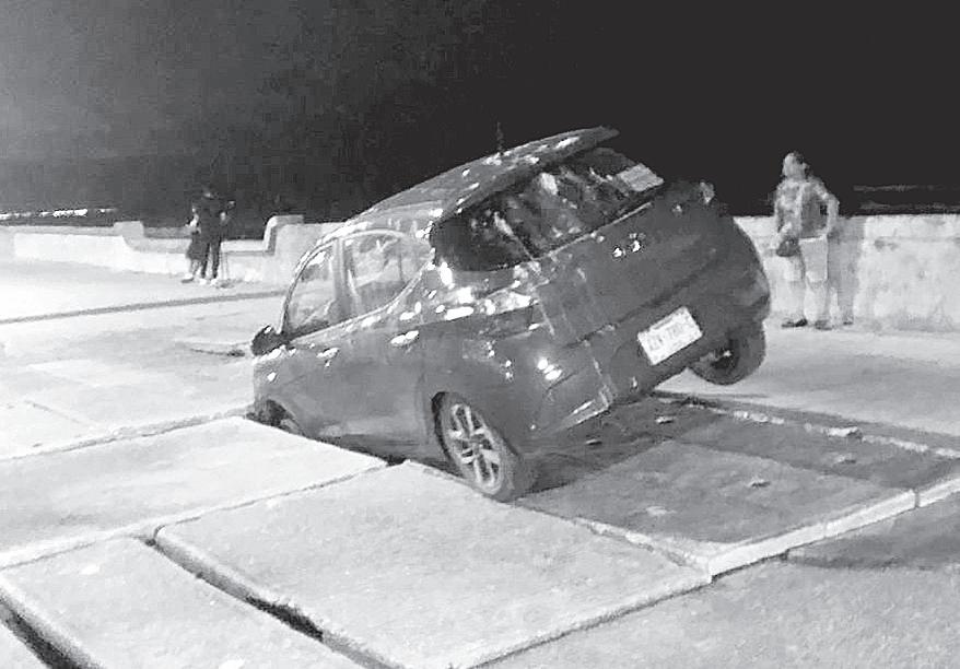 Conductor se subió a la banqueta y terminó dentro de una loza de drenaje abierta del malecón PASE A LA 3