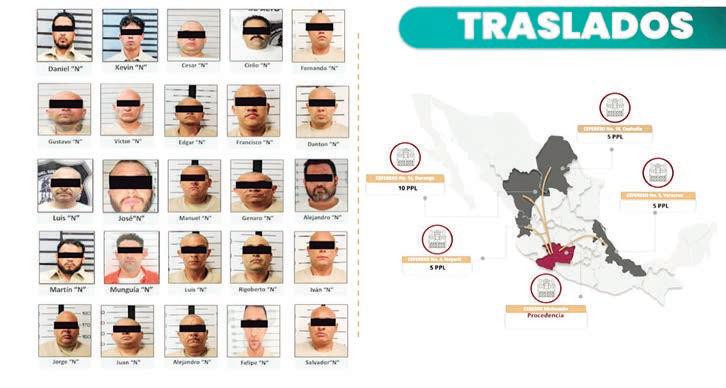 Al Cefereso número 5, de Villa Aldama, se trasladó a cinco personas privadas de la libertad;alCeferesonúmero14,deDurango, otras 10; al Cefereso 4, de Nayarit, cinco; y al Cefereso 18, de Coahuila, otras cinco. García Harfuch informó que los traslados de las 25 personas privadas de su libertad fueron realizados por personal de la Guardia Nacional, de la Secretaría