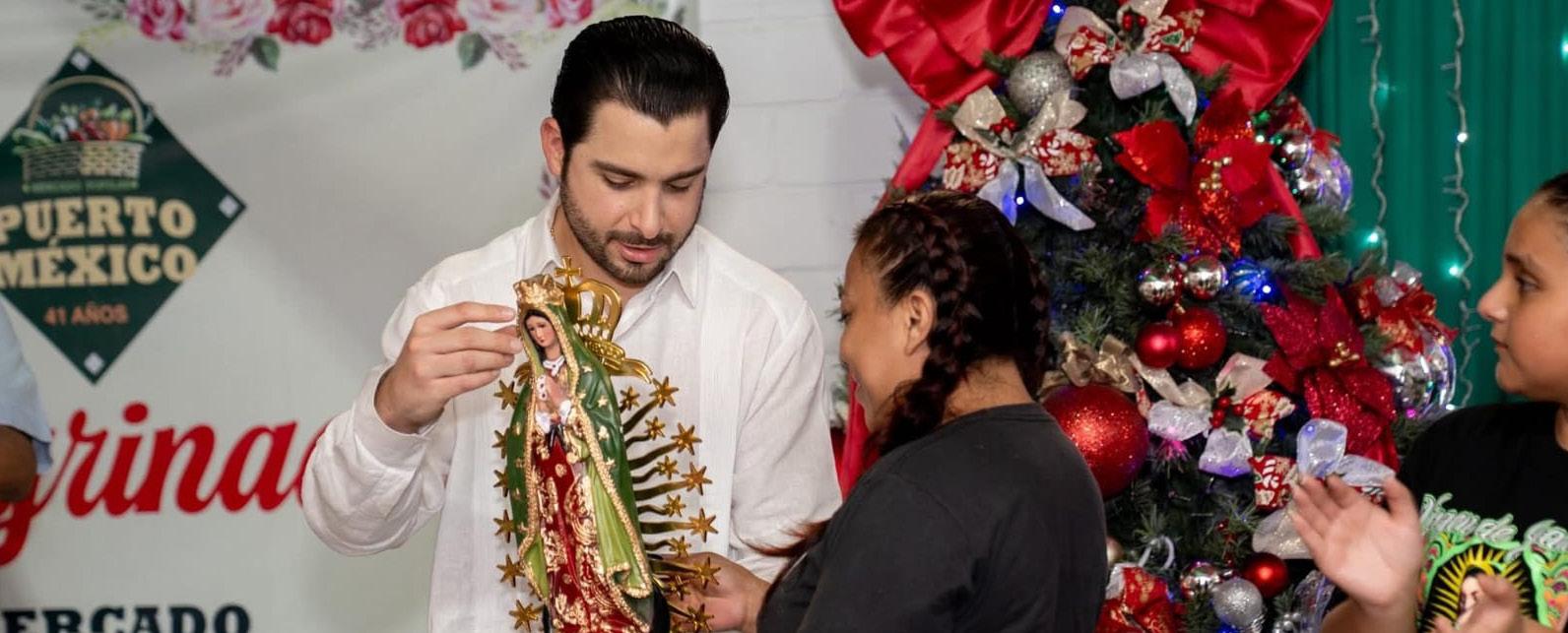 Como cada año, Isaac Ferez Esparza participó en la peregrinación y en las tradicionales mañanitas en honor a la Virgen de Guadalupe, evento organizado por los locatarios del Mercado Puerto México, encabezados por Esmeralda Colorado, líder de los comerciantes.