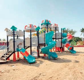 reforzado y acero, pasamanos, resbaladillas y más que están siendo instalados a fin de que los niños puedan divertirse.
