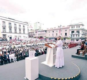 Donde por primera vez una mujer está al mando del estado, el reto es grande pero estoy más que preparada para esto. No tengan duda que el segundo piso en el estado está en construcción, con voluntad, trabajo y arrojo”.