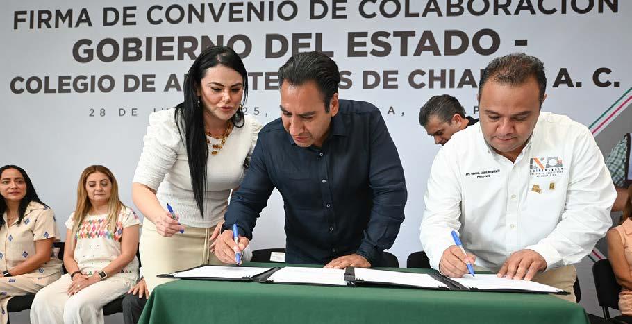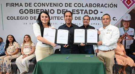 En el municipio de Tapachula, el gobernador Eduardo Ramírez Aguilar firmó un convenio de colaboración con el Colegio de Arquitectos de Chiapas AC, como parte del cumplimiento de la Ley de Obra Pública para el Estado. En este marco, hizo un llamado a las y los profesionales del sector a conducirse con honestidad y denunciar cualquier acto de corrupción, con el fin de garantizar proyectos de calidad que impulsen el desarrollo económico de la entidad.
