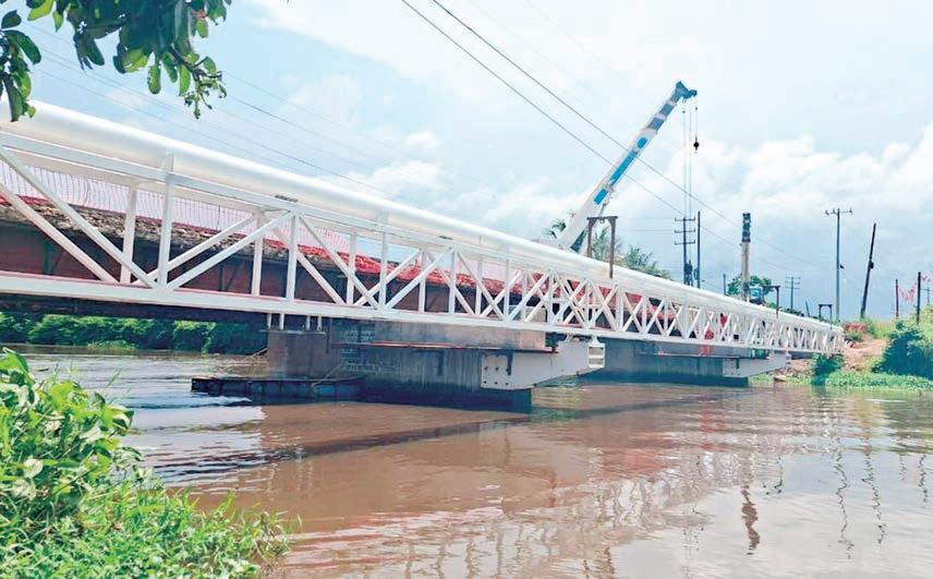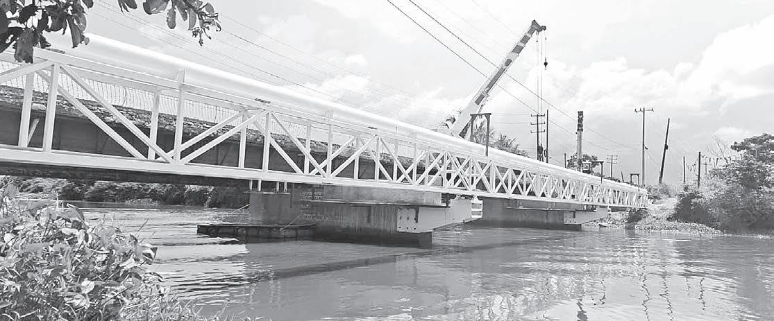 En tanto, los trabajos consistieron en la colocación de nueve vigas con las que se reforzará el puente.