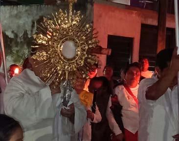 Coatzacoalcos, Ver.- La madrugada de este viernes 24 de octubre, católicos de la parroquia San Rafael Guízar y Valencia ubicada en la Col. Las Gaviotas al poniente de Coatzacoalcos, realizaron una procesión con el Santísimo Sacramento, fecha en la que también celebran a su Santo Patrono, el Santo Obispo veracruzano, Monseñor Guízar y Valencia, ejemplo de entrega , fe y amor pastoral.