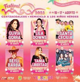 Xalapa, Ver.- El Gobierno del estado de Veracruz celebrará del 15 al 17 de agosto el Festival del Mar en Coatzacoalcos, evento que integra reflexión, cultura y música con la participación de reconocidas figuras del arte nacional e internacional. La programación musical contempla conciertos gratuitos a partir de las 19:00 horas en el Hemiciclo a los Niños Héroes, junto al malecón, con el siguiente cartel: