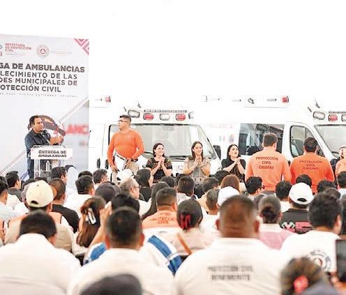 Al encabezar la entrega de ambulancias para fortalecer las Unidades Municipales de Protección Civil, el gobernador Eduardo Ramírez Aguilar destacó que el gobierno de la Nueva ERA está comprometido con la seguridad y la salud del pueblo chiapaneco. Subrayó que la coordinación con los ayuntamientos ha sido clave para atender las necesidades más urgentes y obtener resultados en beneficio de la población.