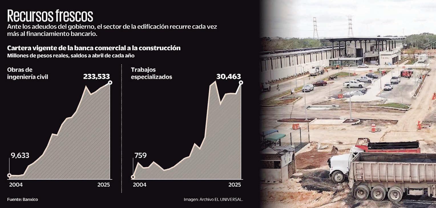 La cartera de crédito de la banca comercial a empresas de la construcción, que realizan trabajos de ingeniería civil vinculados a la contratación pública, se ubicó al cierre de abril pasado en 233 mil 533 millones de pesos.
