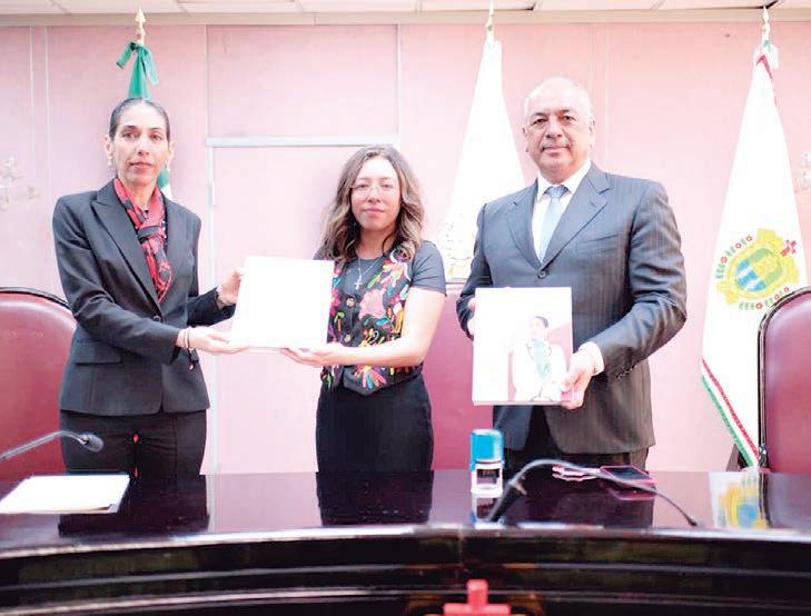 La presidenta de la Mesa Directiva, diputada Naomi Edith Gómez Santos, y el secretario de la Comisión de Procuración de Justicia, diputado Adrián Ávila Estrada, atestiguan este acto. PASE A LA 4