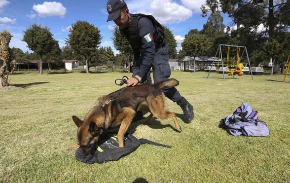 Un grupo de 50 perros especializados son entrenados también para localizar explosivos, armas y drogas en el Estado de México.