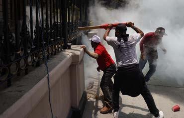 Uno de los hechos que generó mayor preocupación fue la detonación de al menos siete artefactos explosivos de fabricación casera, tipo petardo, en las inmediaciones del recinto gubernamental.