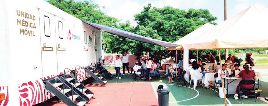la unidad médica móvil mediante un programa itinerante diseñado para acercar la atención médica gratuita en las colonias como Ciudad Olmeca lado Playa y Río, Nueva Calzadas, Rafael Hernández Ochoa, Independencia, así como las comunidades de Villa Allende, 5 de Mayo y Cangrejera I.