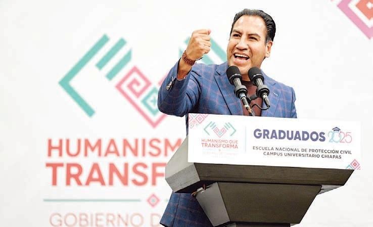 El gobernador Eduardo Ramírez Aguilar asistió a la ceremonia de graduación de estudiantes de licenciatura, maestría y doctorado de la Escuela Nacional de Protección Civil (Enaproc), Campus Universitario Chiapas. En este marco, felicitó a las y los profesionistas y los llamó a desempeñarse con humanismo, lealtad y dedicación, poniendo sus conocimientos al servicio de sus estados y países.