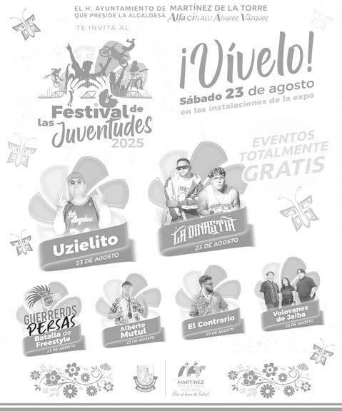 Gerente de Marketing L.C. Laura Ortiz Torres EL HERALDO DE MARTINEZ es una publicación diaria de lunes a sábado. Sábado 23 de Agosto de 2025 | Año 7 | No. 2302 | Editor responsable Ing. Eduardo Sánchez Macías. Número de certificado de Reserva de Derecho al Uso Exclusivo del Titulo 04-2017-090412182000-101. Certificado de Licitud 17081. Certificado de Licitud de Contenido 17081. Domicilio de la publicación, impreso y distribuido por Empresas Franes, S.A. de C.V., con domicilio en Boulevard Rafael Martínez de la Torre No. 168. Esq. 22 de Noviembre, Col. San Manuel, Martínez de la Torre, Ver., C.P. 93600. Tels.:(01 232) 324-85-46, 324-4676, 373-15-95, Fax 324-85-47 dmartinenseproduccion@gmail.com