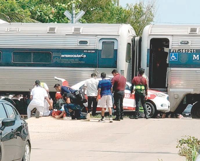 Intentó ganarle el paso al tren de pasajeros del Istmo de Tehuantepec, mujer y menor de edad resultan lesionadas