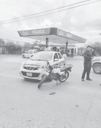 Tras la colisión, el motociclista salió proyectado y golpeó su cabeza contra el parabrisas del automóvil, para posteriormente caer sobre el pavimento. Elementos de Protección Civil y Bom -