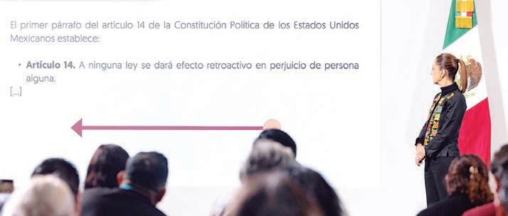 En la conferencia matutina: “Las mañaneras del pueblo”, la Presidenta de México, Claudia Sheinbaum Pardo, pidió al coordinador general de Política y Gobierno, Arturo Zaldívar Lelo de Larrea, explicar el posicionamiento de su administración: se debe respetar el Artículo 14 de la Constitución, el cual establece que no debe haber retroactividad en las leyes. “Le pedí al doctor Arturo Zaldívar, ministro, o exministro presidente de la Corte, sobre el tema este de la retroac-