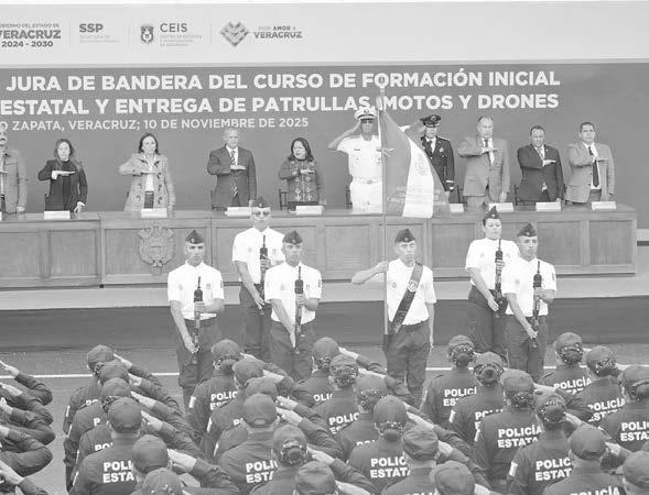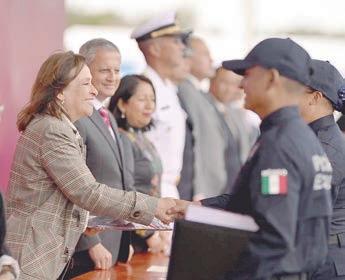 confianza de la gente, sabemos que, no solo con equipamiento, capacitación y un profundo sentido de responsabilidad, lograremos consolidar la paz, también con actitud y acercamiento a la sociedad”, expresó. Durante la ceremonia de graduación y jura de bandera del Curso de Formación Inicial para Policía de Proximidad Estatal, realizada en el Centro de Estudios e Investigación en Seguridad, la titular del Ejecutivo destacó la inclusión de las mujeres dentro de las filas de la dependencia.